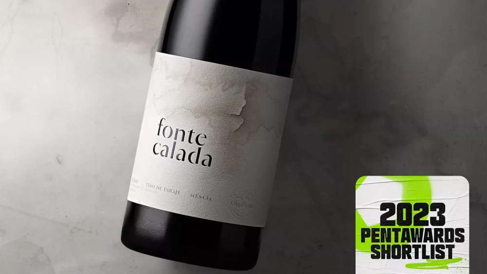 “En el caso de Fontecalada, hablamos de un vino de un paraje atípico del Bierzo en el municipio de Corullón, con un terreno de carácter mineral situado en un lugar donde antaño había caleros u hornos de cal. Su autora, la enóloga Olga Verde, nos dio total confianza para crear una etiqueta diferente que contara esas particularidades a través de un diseño auténtico, pero elegante: con el reto añadido de crear una grieta literal, colocada estratégicamente en la etiqueta”, detalla el diseñador.