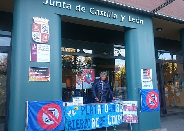 César Sánchez / ICAL El colectivo Bierzo Aire Limpio, durante su concentración ante la sede de la Junta en PonferradaLa plataforma Bierzo Aire Limpio ha entregado este martes en la sede de la Junta de Castilla y León en Ponferrada 525 firmas apoyando las alegaciones contra la construcción de una planta de producción de energía a partir de biomasa de Forestalia, que se instalará en el polígono El Bayo (Cubillos del Sil), a pesar de que la compañía ha negado las acusaciones de la asociación.