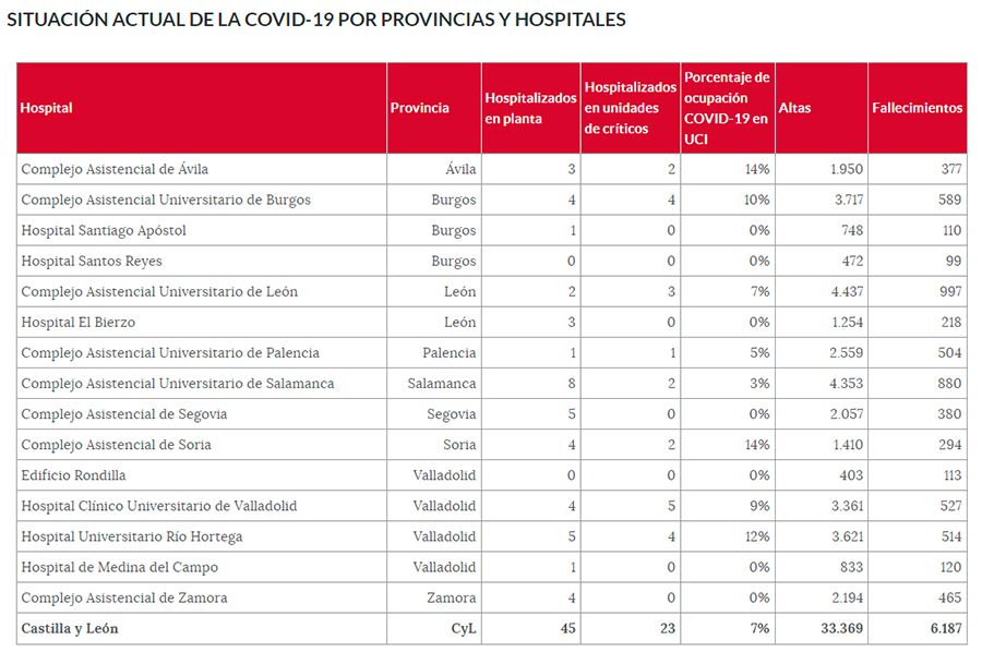 Con respecto a los decesos en el Hospital del Bierzo, no hay que lamentar nuevos fallecimientos, enmarcándose la cifra en 218, desde el último fallecido por COVID-19 el 5 de septiembre.