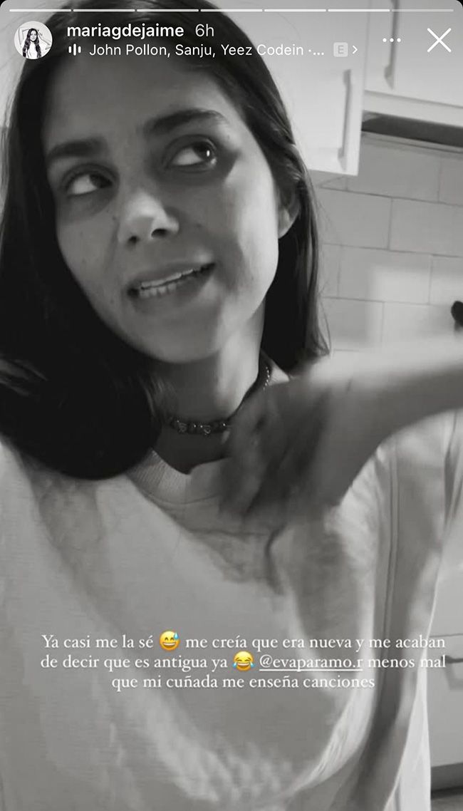 "Ya casi me la sé. Me creía que era nueva y me acaban de decir que es antigua ya. Eva Páramo, menos mal que mi cuñada me enseña canciones", afirmaba María G. de Jaime a través de su cuenta de Instragram (@mariagdejaime).