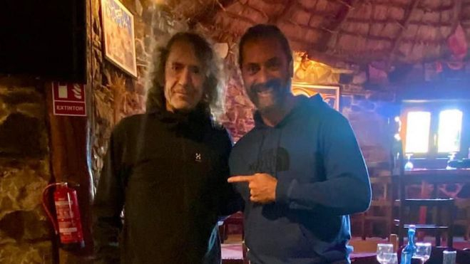 "¡Aquí con el gran Roberto Iniesta, cantante y fundador de Extremoduro. Una maravillosa coincidencia!", escribe el músico berciano, Jorge Prada Merayo, en su cuenta de Instagram @jorge_prada_merayo, acompañando a la fotografía que inmortaliza a Robe Iniesta en esta palloza berciana.