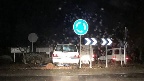 Bierzo / Un turismo ‘cruza’ de madrugada la rotonda de acceso a Cacabelos