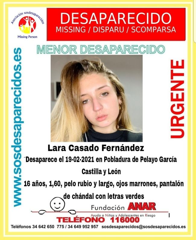 Las fueras de Seguridad buscan a un joven de 16 años, Lara C.F., desaparecida el pasado viernes 19 en la localidad leonesa de Pobladura de Pelayo García.