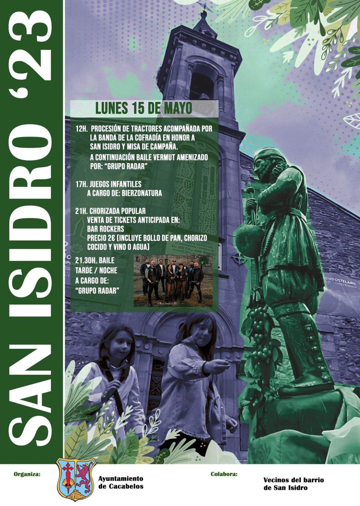 Cacabelos celebrará el próximo lunes la Fiesta de San Isidro Labrador. La fiesta comenzará a las 12 horas, cuando tendrá lugar la tradicional procesión de tractores engalanados, que irá acompañada de la banda de la cofradía y terminará con la posterior misa en la que los agricultores pedirán a su santo un buen año de cosechas.