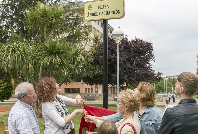 La labor de Ángel Francisco Fernández Pérez 'Cacharrón' en pro de la difusión de la música en la comarca tiene su reconocimiento en forma de una plaza en Ponferrada. El espacio, dotado con un parque infantil y ubicado en el barrio de los Judíos, fue inaugurado este martes por la alcaldesa de Ponferrada, Gloria Fernández Merayo, y la viuda, Raquel Rodríguez, muy emocionada por el homenaje tributado por la capital berciana. Familiares y amigos de Cacharrón acompañaron a los representantes municipales y a la viuda en el acto.