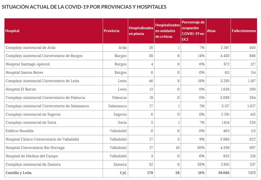 El Hospital del Bierzo ha registrado 2 nuevos ingresos por COVID-19 desde el lunes, según los datos emitidos por la Consejería de Sanidad de la Junta de Castilla y León, Así, el complejo hospitalario berciano mantiene un total de 13 pacientes por COVID en sus instalaciones: 13 en planta y 0 en UCI, por tanto la UCI del Hospital del Bierzo se encuentra libre de enfermos por Coronavirus, una jornada consecutiva más. Además, también se han concedido 4 altas desde el viernes, lo que supone un ascenso del total acumulado desde el inicio de la pandemia, que enmarca las altas en 1.634 desde marzo del año 2020, en el complejo berciano.