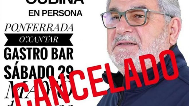 La firma del libro 'Oubiña, toda la verdad' de Laureano Oubiña prevista para este sábado en Ponferrada ha sido cancelada.