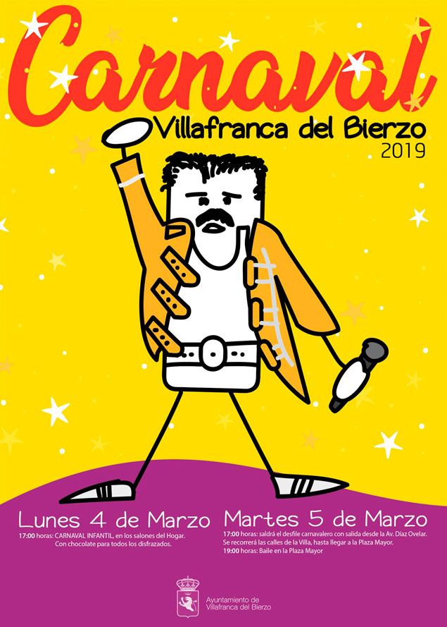 VILLAFRANCA DEL BIERZO: La villa del Burbia tendrá su Desfile de Carnavales el 5 de marzo, con salida de la avenida Díaz Ovelar y que recorrerá sus principales calles para finalizar en la Plaza Mayor, donde tendrá lugar el baile a partir de las 19.00 horas. Un día antes, el lunes 4 de marzo, será el momento del Carnaval Infantil en los salones del Hogar del Pensionista con chocolate para todos los disfrazados.