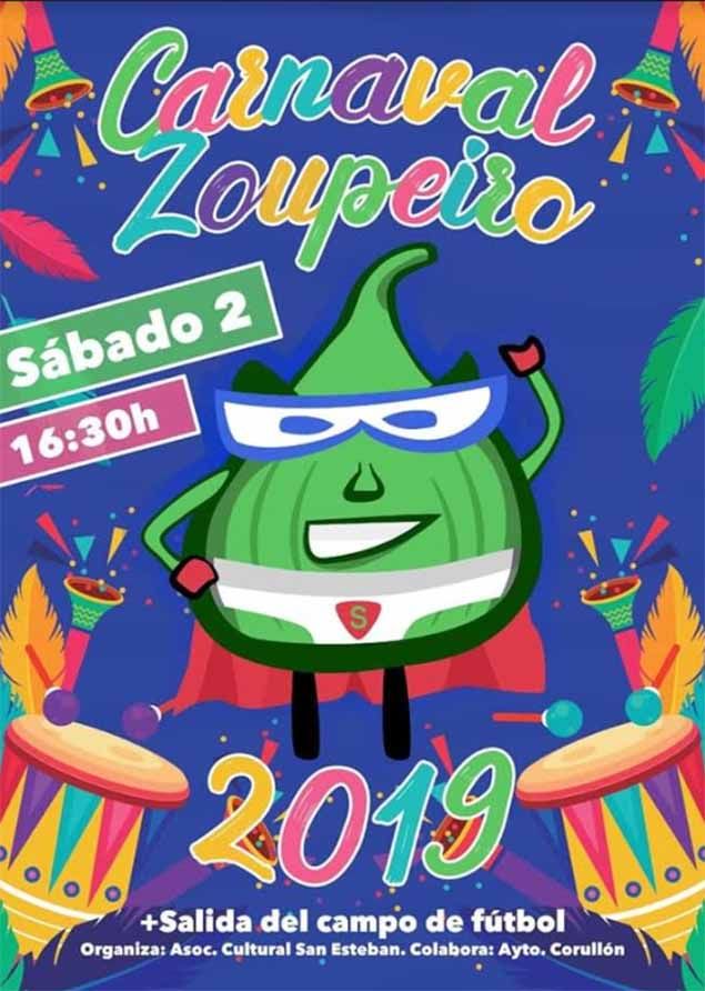 CORULLÓN: El municipio celebra el Carnaval Zoupeiro con un desfile el sábado 2 de marzo. Comenzará a las 16.30 horas del campo de fútbol para recorrer las calles. Organizado por la Asociación Cultural San Esteban con la colaboración del Ayuntamiento.