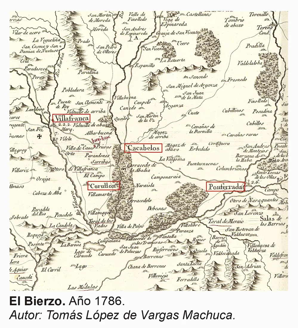 Por primera vez encontraríamos el nombre actual en 1243 “Bierzo” en los documentos del llamado “tumbo viejo” del Monasterio de San Pedro de Montes.