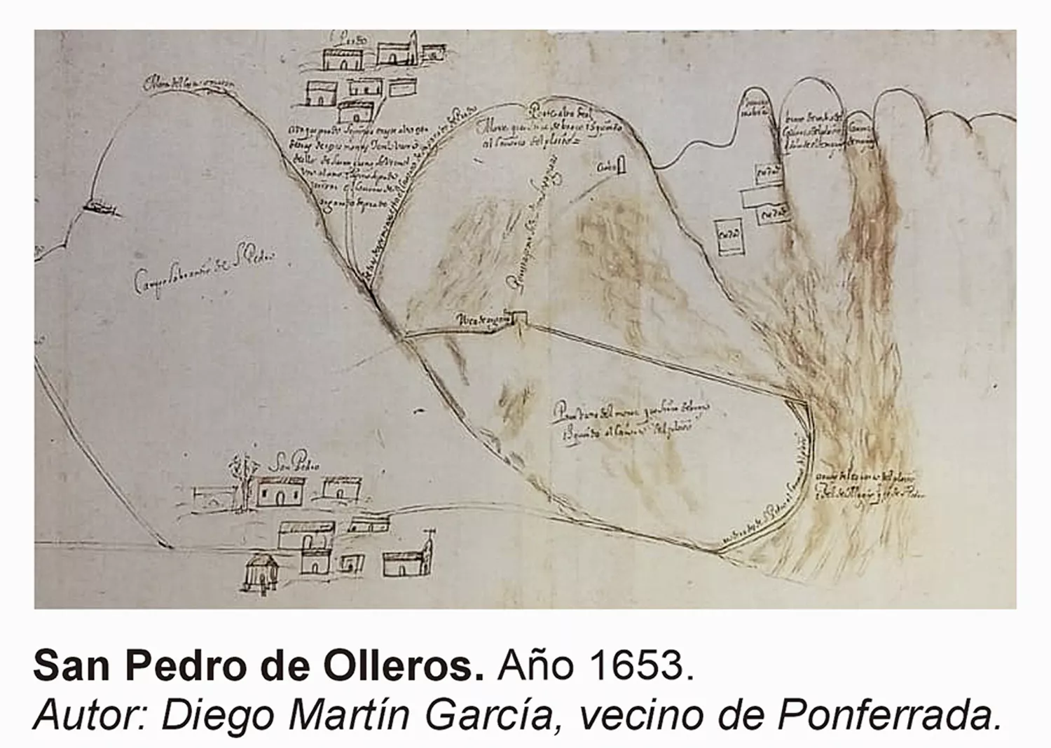 No obstante, no solo se llevaban a cabo mapas de la geografía española en su conjunto, los propios vecinos del Bierzo también realizaban sus mapas a un nivel más local. Prueba de ello son estas representaciones de las localidades de San Pedro de Olleros (Vega de Espinareda) y Salas de los Barrios (Ponferrada) que datan de los años 1653 y 1693, respectivamente. Entre las características de estos mapas, la que más destaca es el dibujo de distintos elementos de la naturaleza como ríos, bosques o montes.