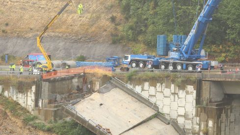 Comienzo del desmontaje de las pilas 1 y 2 del viaducto del Castro sentido A Coruña de la A-6 en Vega de ValcarceCastilla y León y Galicia solicitan al Ministerio de Transportes, Movilidad y Agenda Urbana (MITMA) la convocatoria de una reunión para abordar los plazos y la programación para la reconstrucción de los viaductos de la autovía A-6.