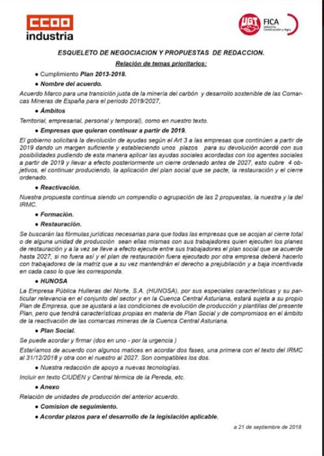 Aseguran además que la voluntad del Ministerio no cambia. "Solo va encaminada al cierre y a la desaparición sin alternativas de la minería del carbón, el secretario de Estado solo estuvo diez minutos en una reunión que duró tres horas".