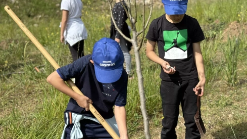 Cementos Cosmos, perteneciente al grupo Votorantim Cimentos, planta 200 árboles frutales en la cantera de su fábrica ubicada en Toral de los Vados con la participación de una treintena de escolares del colegio de la localidad y el centro Jimena Múñiz de Corullón.