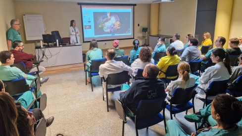 Además, la Gasbi ha realizado una sesión informativa dedicada al programa de cirugía hepatobiliopancreática llevada a cabo por la cirujana del Hospital El Bierzo, Tania Funes, y el jefe del Servicio de Cirugía General, Juan Pedro Robledo. Bajo el lema ‘Innovación, excelencia y colaboración’ se ha destacado el trabajo interdisciplinar entre los Servicios de Anestesia, UVI, Digestivo, Anatomía Patológica y Enfermería como una colaboración esencial que permite garantizar un abordaje integral en patologías complejas como la cirugía pancreática.
