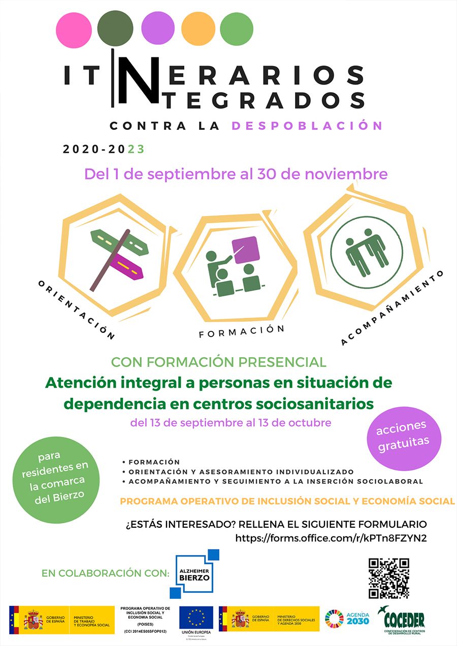 COCEDER comienza en septiembre un nuevo “Itinerario integrado para luchar contra la despoblación” en colaboración con AFA Bierzo, Asociación de Familiares de Enfermos de Alzheimer) para personas residentes en la zona del Bierzo. Estos itinerarios de inserción sociolaboral se enmarcan en el Programa Operativo de Inclusión Social y Economía Social (POISES-CCI2014ES05SFOP012) dentro de su eje para promover la inclusión social y luchar contra la pobreza.