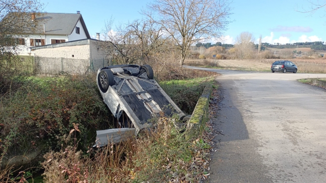 Un vehículo sufrió una aparatosa salida de vía este miércoles en Magaz de Abajo, en el municipio de Camponaraya, sin que se registraran heridos. El accidente tuvo lugar alrededor de las 12:00 horas en el cruce entre las calles La Reguera y La Perrela, según confirmaron fuentes de la Jefatura Provincial de Tráfico de León.