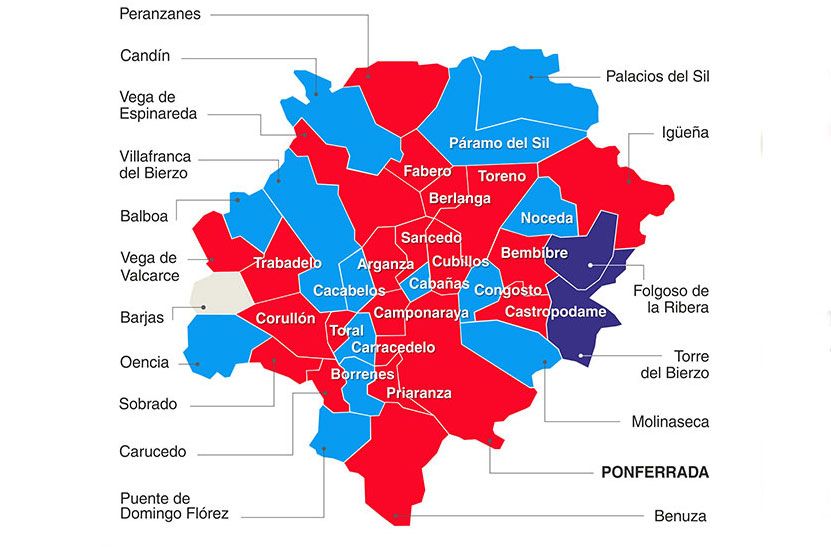 El PSOE ha vencido al PP en los principales municipios bercianos. Con mayoría simple y a falta de pactos en Ponferrada, con mayoría absoluta en Bembibre y Fabero, opciones de gobernar en alianza en Cacabelos, y manteniendo feudos como Camponaraya, Cubillos, Vega de Valcarce, Vega de Espinareda o Toreno.