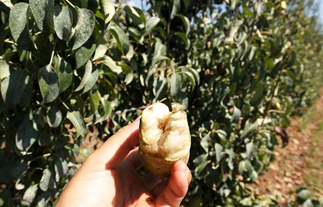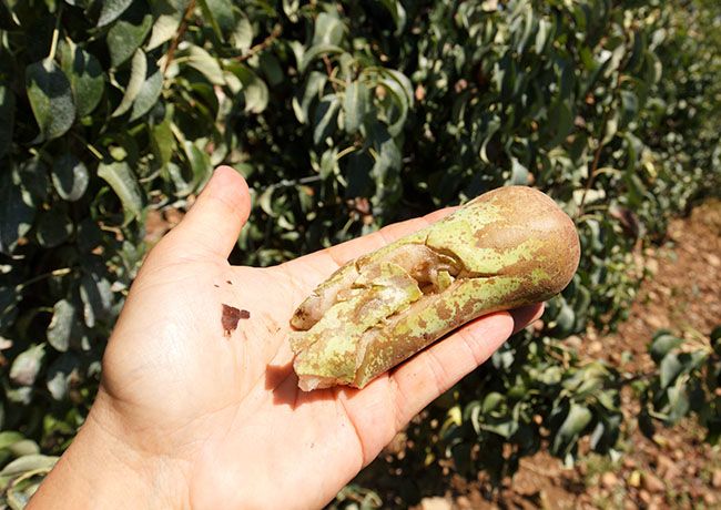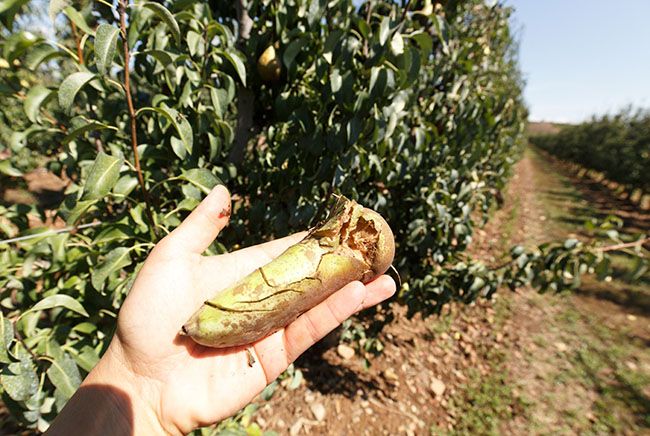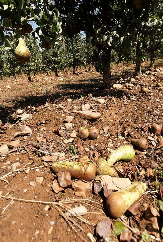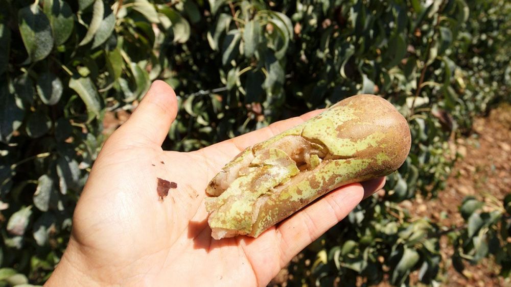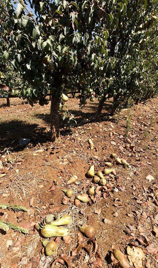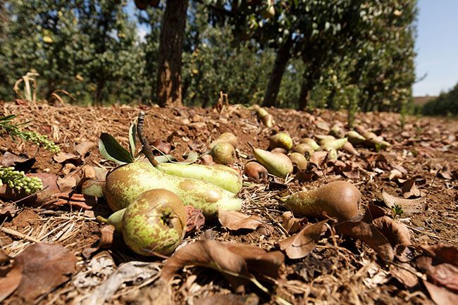 Explotación de pera conferencia en el municipio de Corullón (León), afectada por la fuerte granizada de ayer