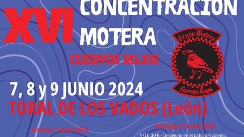 Los días 7, 8 y 9 de junio se celebrará en Toral de los Vados la XVI Concentración motera organizada por el grupo motero Cuervos Rojos