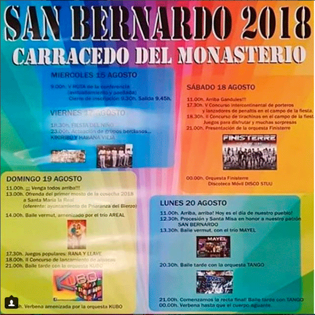 Carracedo del Monasterio celebra San Bernardo con juegos populares y orquestas, entre otras actividades.