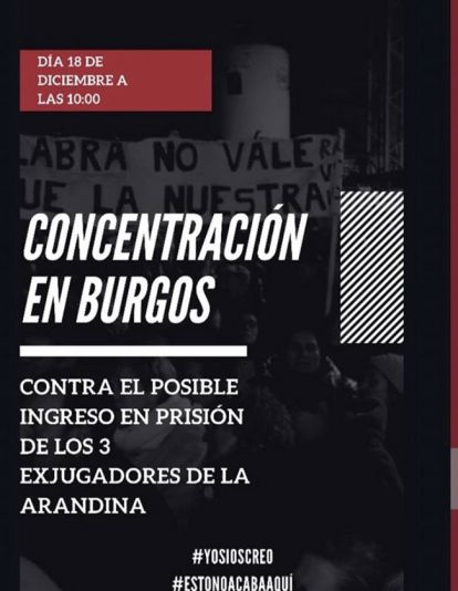 Esta convocatoria pretende secundar la concentración que tendrá lugar el día 18 en Burgos a las 10:00 horas, frente a la Audiencia Provincial. El por qué de esta cita es que es el momento en que los tres ex-jugadores de la Arandina conocerán si ingresan en prisión de manera inmediata. El pasado sábado 14 de diciembre, varios cientos de personas se manifestaron en Aranda de Duero con el mismo propósito de protesta, acompañados por familiares y amigos de los jóvenes.