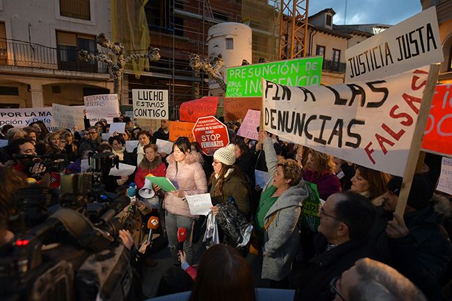 Imagen de la concentración en Aranda de Duero el pasado sábado / Foto: ICALEl revuelo por la sentencia del 'Caso Arandina' continúa copando la opinión pública, los medios de comunicación y las redes sociales. Carlos Cuadrado ‘Lucho’ -jugador del Atlético de Bembibre la pasada temporada-, el berciano Víctor Rodríguez ‘Viti’ y Raúl Calvo han sido condenados a 38 años de cárcel cada uno, como autores de un delito de agresión sexual con acceso carnal en forma bucal, respecto a la denunciante de 15 años de edad en la fecha de los hechos.