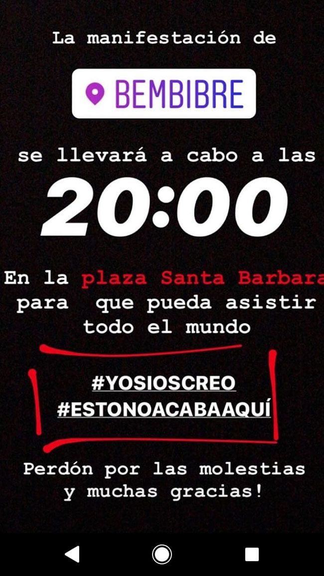 Precisamente, a través de las redes sociales se ha difundido este lunes la convocatoria de una concentración contra dicha sentencia en Bembibre. En concreto, el cartel que circula por la red cita a la sociedad berciana a manifestarse el sábado 21 en la Plaza Santa Bárbara de la capital del Bierzo Alto a las 20:00 horas. Por el momento, se desconoce la identidad de la persona o personas que han convocado la concentración, pero el cartel ha sido compartido por muchos bercianos en sus perfiles. Por su parte, muchos otros bercianos han mostrado su desacuerdo con la manifestación, también a través de las plataformas digitales.
