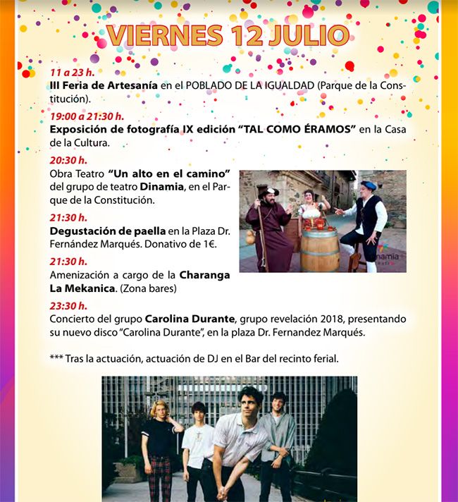 El viernes 12 de julio el municipio de Cubillos del Sil recibirá al grupo revelación de 2018 Carolina Durante que presentará su nuevo disco ''Carolina Durante''.