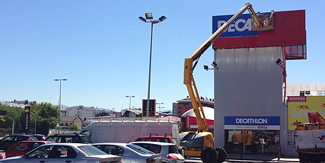 Durante toda la mañana los operarios sustituían la cartelería, del rojo Koodza y logos, con el azul de Decathlón y toda la cartelería, y según ha podido saber este diario antes de concluir la semana el interior del establecimiento ya será íntegramente una tienda de la primera marca de la compañía Oxylane.