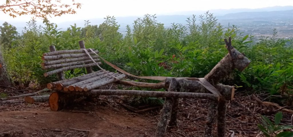 El complejo recreativo en medio de la naturaleza cerca de Rimor, ahora ya cuenta con más 'cachivaches' y entre ellos se encuentran los dos columpios de origen, más impresionante red recreativa, una caseta de madera hecha a mano, un mirador con forma de carruaje a caballos, carteles con frases y varios muñecos hechos con troncos de madera. Sin duda, un espacio digno de visita y disfrute.
