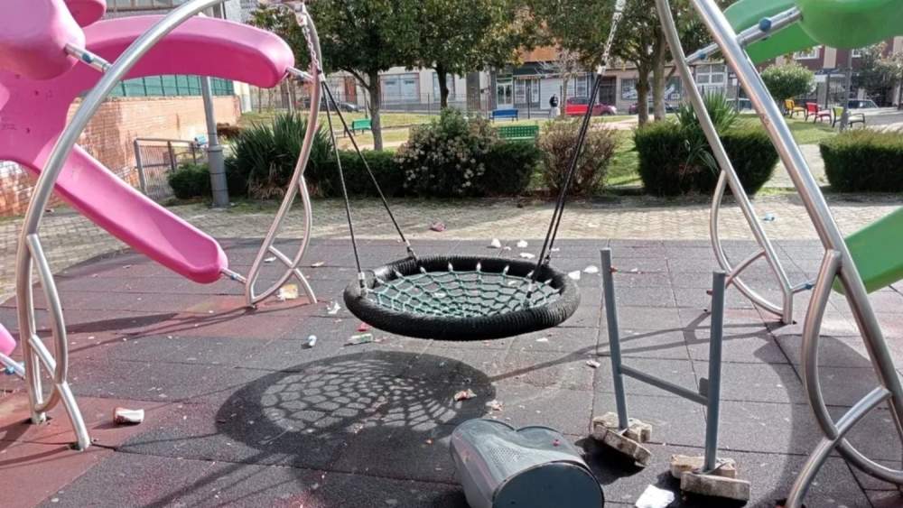 El Ayuntamiento de Fabero ha denunciado esta tarde un acto vandálico que ha sufrido el mobiliario del parque del municipio, que en un día importante para la localidad, amaneció con una papelera rota y la zona infantil llena de basura.