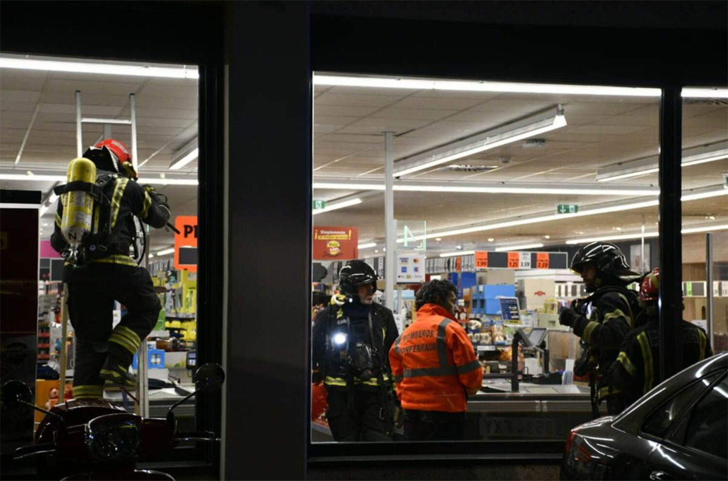 El incidente tenía lugar sobre las 19:00 horas y las labores se desarrollaron hasta más allá de las 20:40 por los trabajos oportunos para dar con la localización exacta del referido incendio en el falso techo, en la canalizaciones de aire y eléctricas de la iluminación. Al reiniciar la alarma tras las labores de búsqueda del punto que motivó su activación -sin resultado positivo- ésta ya registraba 'normalidad' en los humos.