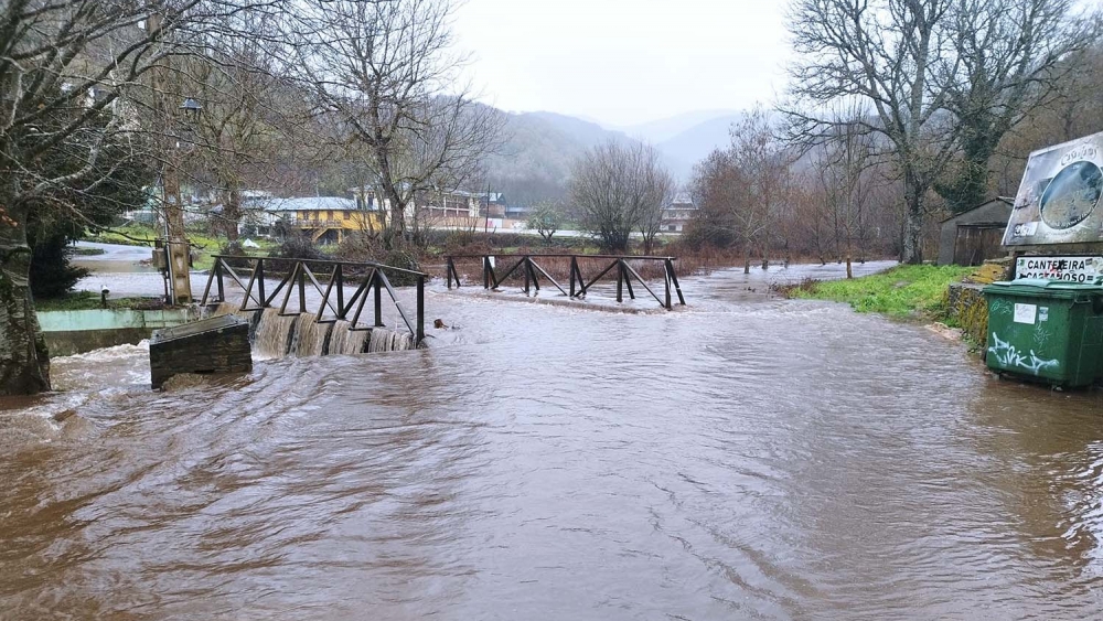 Las persistentes precipitaciones registradas en la comarca del Bierzo han generado el desbordamiento del río Balboa a su paso por el pueblo homónimo. Este fenómeno ha provocado que la plaza principal, la playa fluvial y la iglesia queden anegadas por las aguas, tal como informó el alcalde local, Juan José López, a InfoBierzo.