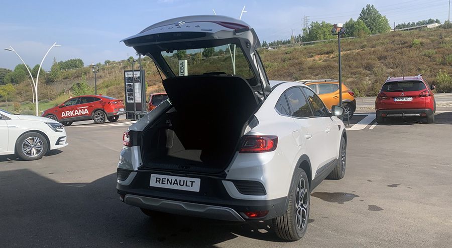 En cuanto a conducción, se percibe un coche alto que transmite buena estabilidad. En el ámbito de sus dimensiones, el Arkana mide casi cinco metros y destaca en todos los aspectos. Por un lado, respeta un buen maletero de volumen generoso entre 480 y 513 litros de capacidad, según motorización, y un falso piso que puede colocarse en la parte inferior para maximizar la capacidad de carga o en la parte superior para albergar equipaje pesado. Además las plazas son desahogadas y dan paso a una gran habitabilidad interior para sus ocupantes, tanto las plazas traseras como en las delanteras gozan de una gran comodidad y amplitud de espacio. En su interior también hay detalles especiales, como el tapizado de piel/ante de los asientos, costuras rojas para éstos y el volante de cuero. Por otra parte, en lo que respecta a su equipamiento, cuenta con los últimos avances tecnológicos entre los que destacan, su pantalla de 9,3” o 7”, vertical u horizontal respectivamente según la versión, faros 100% Led de serie y cuatro tomas de USB (dos en la parte delantera y dos en la parte trasera) para conectar dispositivos electrónicos.