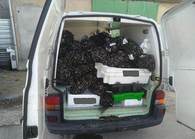 Como consecuencia de la intervención, los agentes decomisaron más de 850 kilos de pescado y marisco, entre los que se cuentan 700 kilos de mejillones, 21 kilos de almejas, 20 kilos de merluza, 18 kilos de cabeza de bacalao, así como distintas cantidades de gallo, rape, lubina, lenguado, chicharro, berberechos, navajas, pota, gambas, nécoras, bueyes y vieiras, que quedaron inmovilizados.