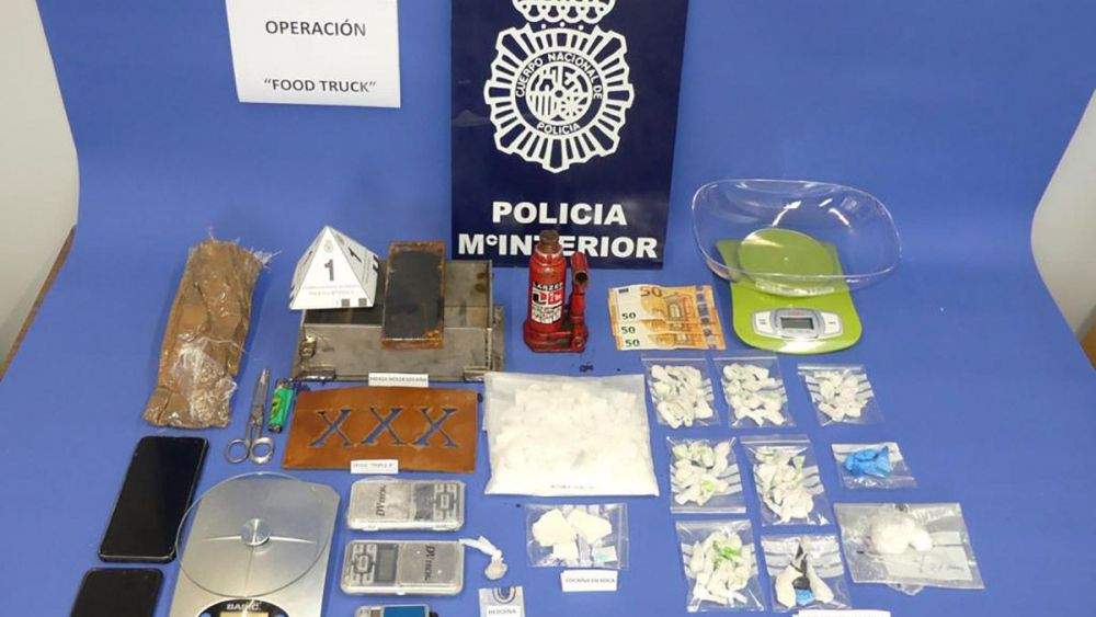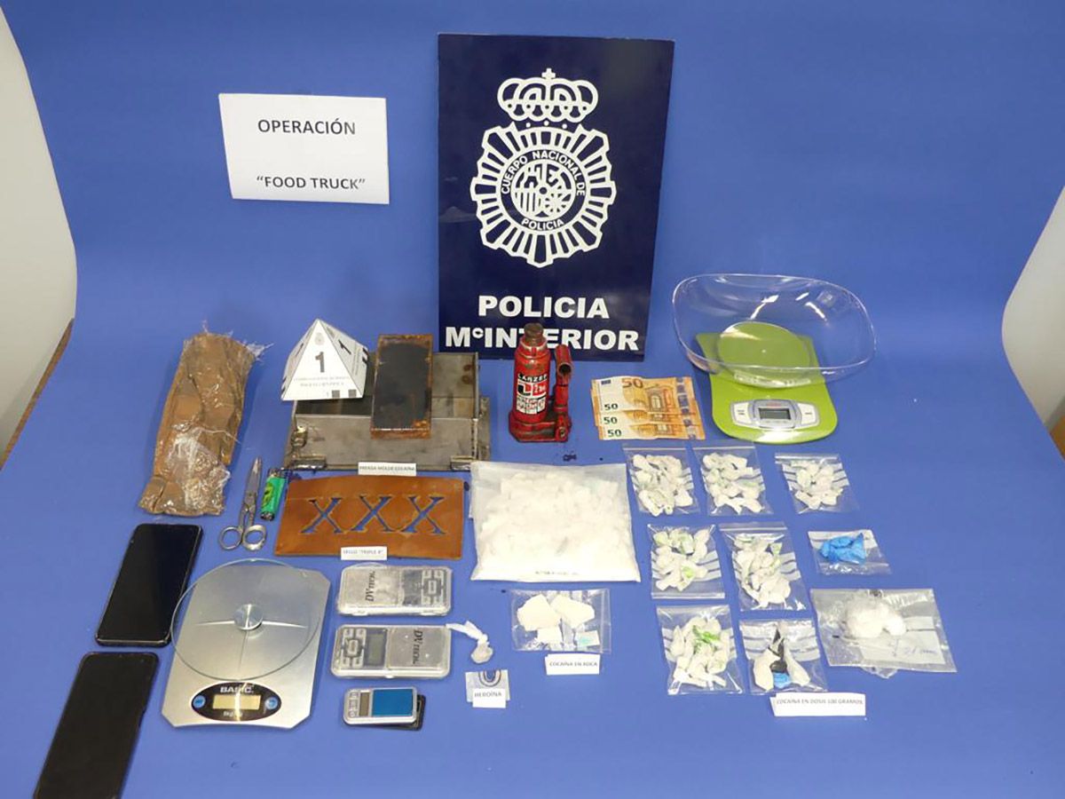 En el interior del vehículo almacén fue hallada e intervenida sustancia estupefaciente escondida en diversos envases, que arrojaron un peso de 500 gramos de cocaína, y dos gramos de heroína, tres basculas de precisión, una prensa con diferentes moldes, uno de ellos con el sello para marcar los paquetes de cocaína y varios teléfonos móviles.