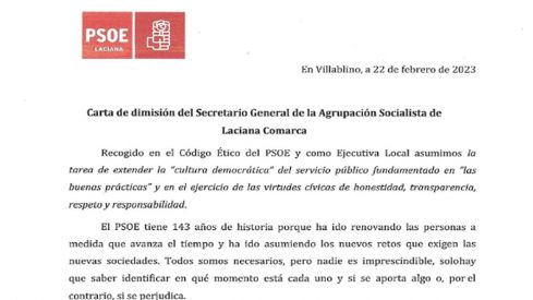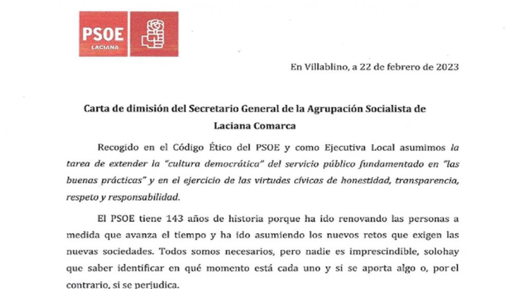 El secretario general de la Agrupación Socialista de Laciana Comarca, Miguel Ángel Álvarez Maestro, y "la mayoría de los miembros de la Ejecutiva Local" han comunicado su dimisión a través de una carta publicada en las redes sociales de la formación el pasado miércoles.