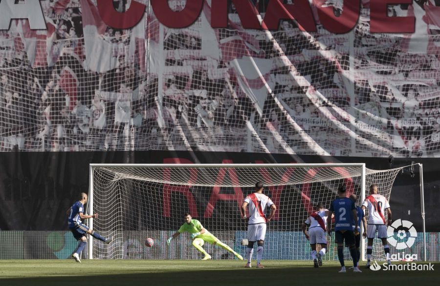 Penalti a favor del Ponferradina. Kaxe sufrió falta en el área. Penalti cometido por Esteban Saveljich (Rayo Vallecano) tras una falta dentro del área