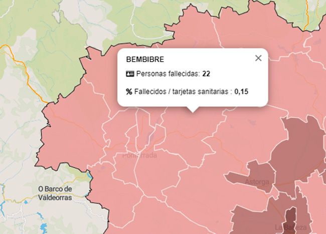 Mapa de fallecidos por COVID desde el inicio de la pandemia / Junta CyL Si el pasado sábado los datos de coronavirus en El Bierzo y Laciana invitaban al optimismo, este domingo la situación se ha dado la vuelta, ya que dos personas han fallecido por cuadro COVID en las zonas sanitarias de Bembibre y Cacabelos, según el informe diario de la Junta.