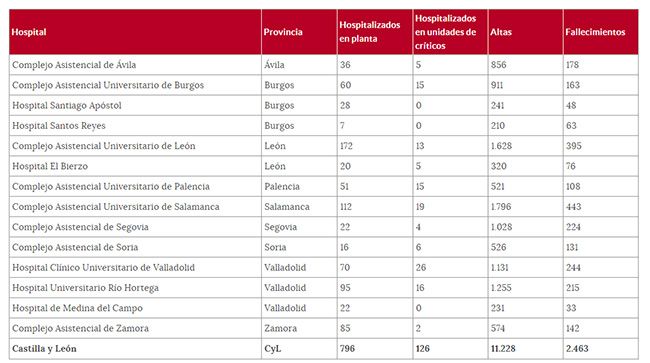 La Junta, siguiendo el criterio del Ministerio de Sanidad, informa ahora del número de pacientes ingresados, tanto confirmados por prueba diagnóstica como con síntomas a la espera de resultados, de ahí que varíen de un día a otro sin registrarse altas o fallecidos.