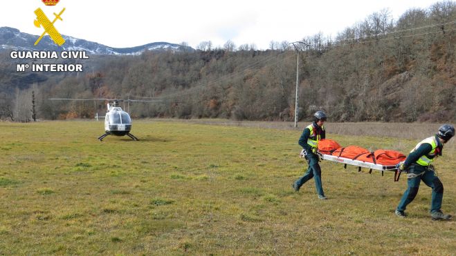 Amos rescates fueron realizados por especialistas del Grupo Especial de Intervención en Montaña (GREIM) de Sabero, auxiliados por el helicóptero de la Unidad Aérea de León, Unidad que este año conmemora el 50 Aniversario de la creación del Servicio Aéreo de la Guardia Civil.