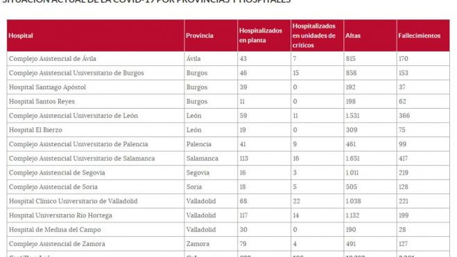 La zona básica de salud de Villablino ha registrado un fallecido por COVID-19 (19 desde el principios de marzo). Por lo tanto, la cifra total de decesos en El Bierzo y Laciana por coronavirus (confirmados y compatibles con la enfermedad) desde principios de marzo es de 145. La distribución por zonas de salud es de 10 en Ponferrada I, 13 en Ponferrada II; 11 en Ponferrada II, 33 en Ponferrada IV, 21 en Bembibre, 11 en Cacabelos, 5 en Villafranca, 4 en Puente de Domingo Flórez, 3 en Toreno, 15 Fabero y 19 en Villablino.