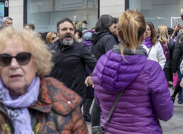 A pocos minutos del comienzo de la marcha en la plaza de Lazúrtegui de Ponferrada para conmemorar el Día Internacional de la Mujer, dos vecinos irrumpieron entre los manifestantes al grito de "feminazis" y otro tipo de insultos. Uno de ellos llegó a encararse con un grupo de personas que respondieron con cánticos feministas, pero finalmente el incidente no fue más.