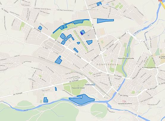 Entre las 'puertas' de acceso, la av. de Galicia (zona glorieta de la Pizarra), la Avenida del Sil (desde avenida de Portugal desvío por batalla Bailén hacia la avenida del Ferrocarril, donde se dispondrá un paso por la zona del río para vehículos). Y por la zona alta acceso desde la avenida del Castillo, donde también se dispone punto de salida -será una puerta mixta-. Para las salidas, por avenida de Valdés, en la zona del Puente del ferrocarril, y en la Plaza Luos del Olmo