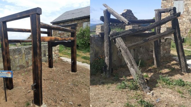 El paso de los años deterioró el 'potro' instalado en El Acebo (Molinaseca) que ya se encontraba en unas condiciones casi de ruina, por ello, este pasado 30 de mayo, la localidad peregrina ha recuperado uno de sus símbolos etnológicos, y así poder seguir recordando el pasado de este enclave rural. Aunque se trata de una réplica construida con otro tipo de madera.