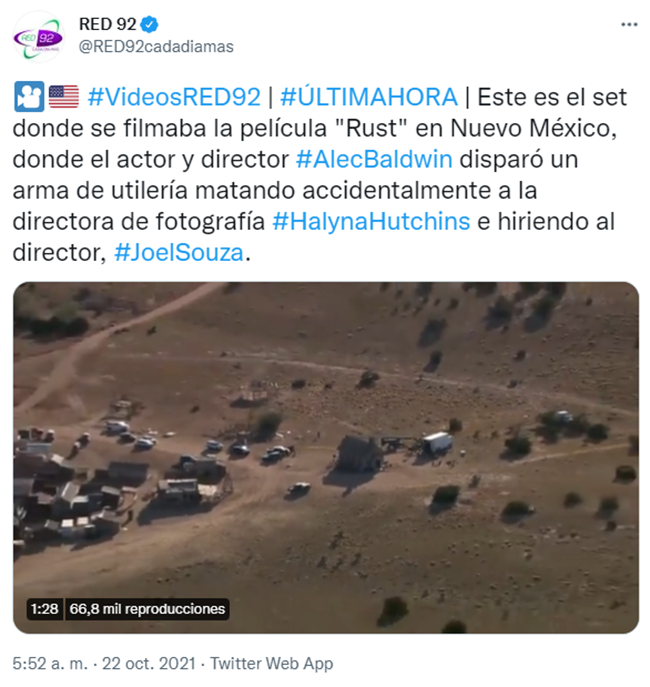 Hutchins, de 42 años, era llevada en helicóptero al Hospital de la Universidad de Nuevo México en Albuquerque, donde murió. Souza, de 48, fue trasladado en ambulancia al Centro Médico Regional Christus St. Vincent en Santa Fe, donde está recibiendo tratamiento por sus lesiones, según informaban las autoridades del condado de Santa Fe.
