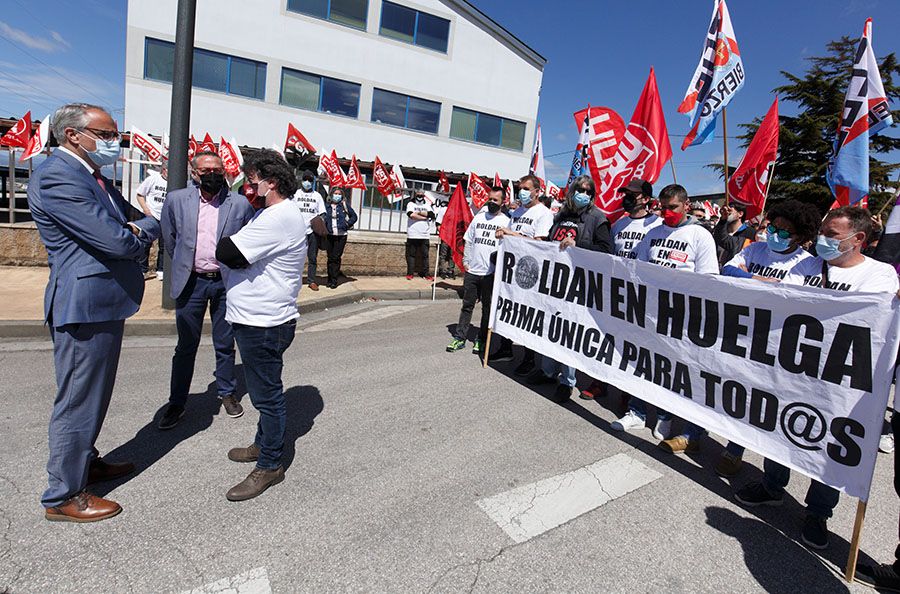 El alcalde de Ponferrada, Olegario Ramón, pidió este lunes, tanto a la plantilla como a la dirección de Aceros Roldán, que muestren su “voluntad real de negociar” para terminar con la huelga que desde hace seis días mantiene paralizada la producción de la acerera, una de las fábricas más importantes del municipio. Ante los trabajadores concentrados a la entrada de las instalaciones, el regidor reclamó flexibilidad “a ambas partes” y transmitió su “solidaridad, apoyo y cercanía” a los empleados ante la “situación compleja” que afrontan. “Salud y suerte”, les deseó al término de su intervención.