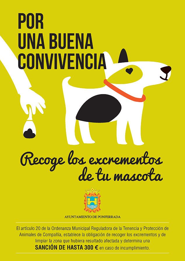 El Ayuntamiento de Ponferrada, con la edición de nuevos carteles informativos, lanza una campaña de concienciación para que los propietarios de los perros no eludan la responsabilidad de recoger los excrementos de sus mascotas.