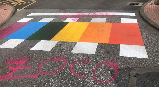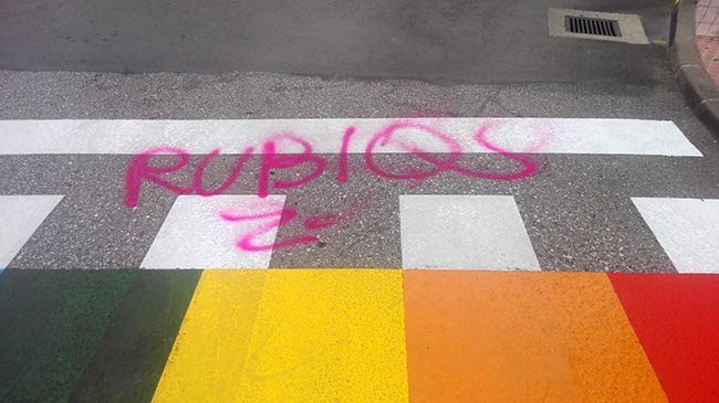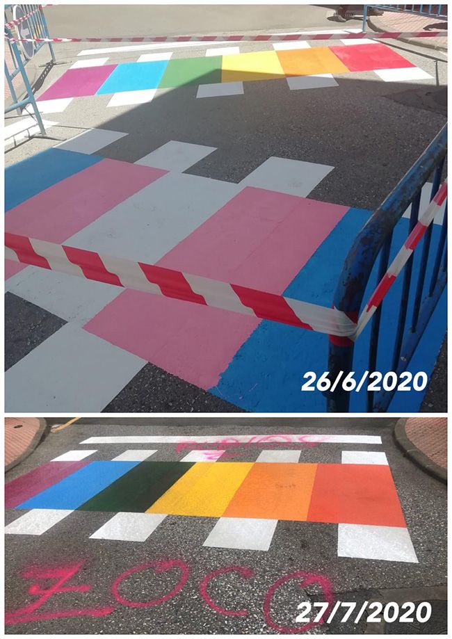 Imágenes de las pintadas / Ayuntamiento de CacabelosEl Ayuntamiento de Cacabelos ha puesto este sábado en conocimiento de la Policía Local y la Guardia Civil los actos vandálicos ocurrido la pasada noche. "Ayer se pintaron dos pasos de peatones (uno con la bandera con LGTBIQ y otro con la TRANS) con motivo de la celebración del día del Orgullo y que iban a ser inaugurados mañana domingo 19 a las 12:30 horas en la Plaza Mayor", han explicado desde el Consistorio.